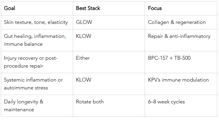 If you’ve been exploring peptide optimization, you’ve probably seen two blends pop up again and again: GLOW and KLOW.